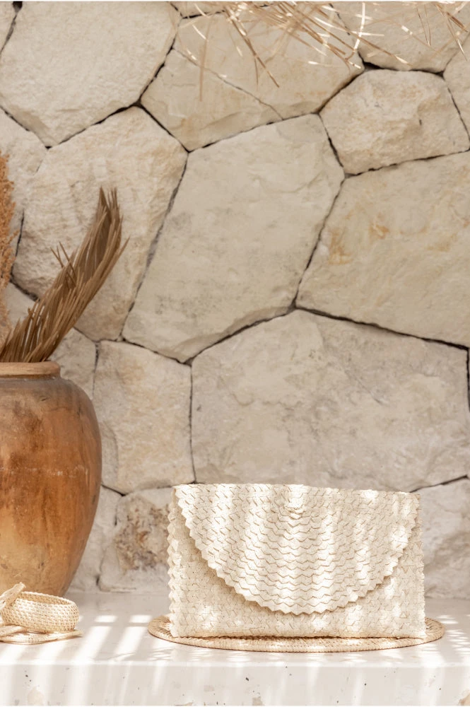 Stylish, sophisticated, and fun – this rattan clutch is the perfect carrier for your daily necessities. The Interior features a soft fabric lining as well as a change pocket. A vintage inspired piece with a modern and playful twist.