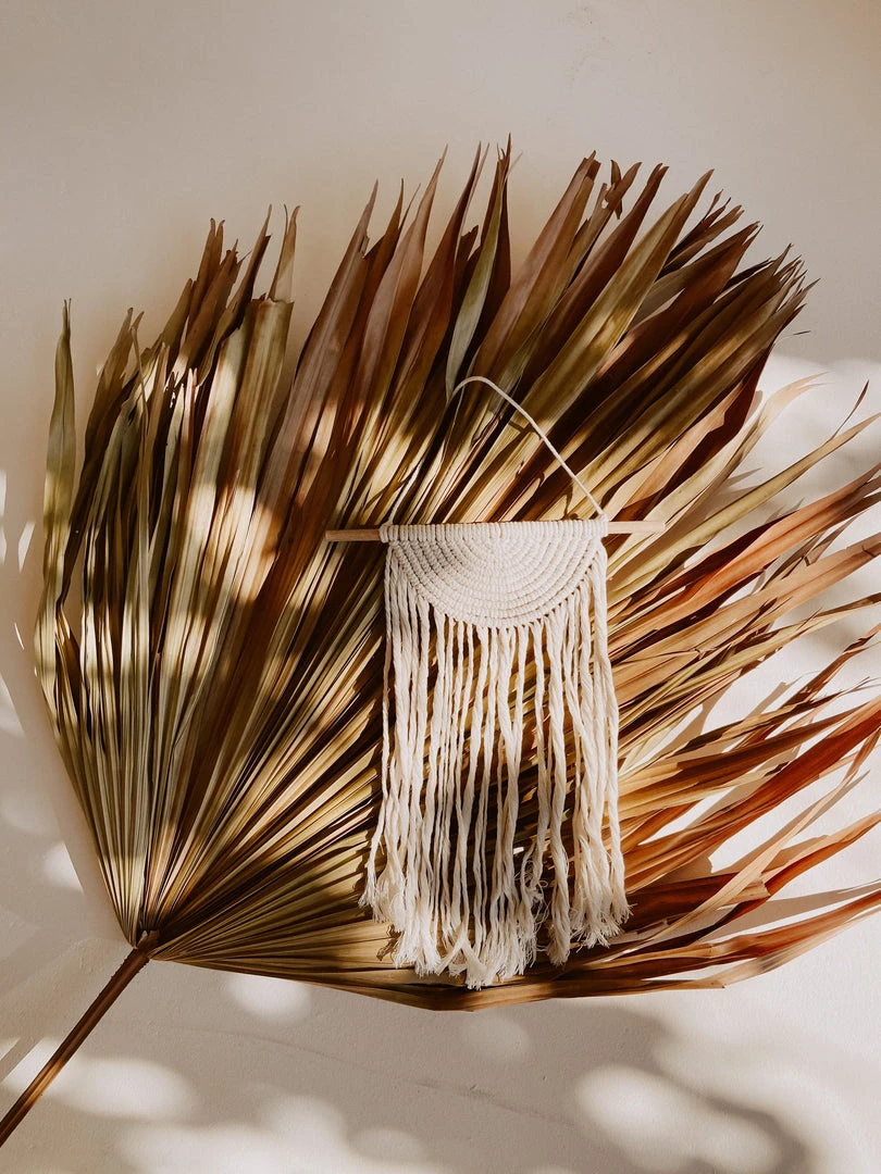 The Iris Wall Hanging is a soft and warm addition to any wall in your home. The half circle design is a modern touch to this traditional macrame piece.