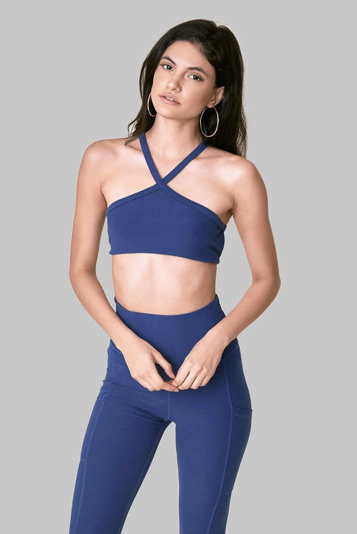 Featuring a high y-neck in front and a sexy, strappy back, this style is perfect for wearing on its own as a bralette or layered under one of our tanks. The perfect color to take a break from black.