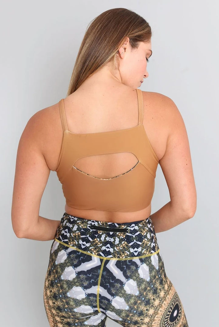 One top, four ways to rock it. Keep it sporty with a high neck at the front or make it sexy with a key-hole cut-out. Turn heads in the bestselling Noor Print or reverse it to a beautiful solid desert hue. This fabric features 4-way stretch and anti-microbial properties allowing you to move freely while staying fresh.