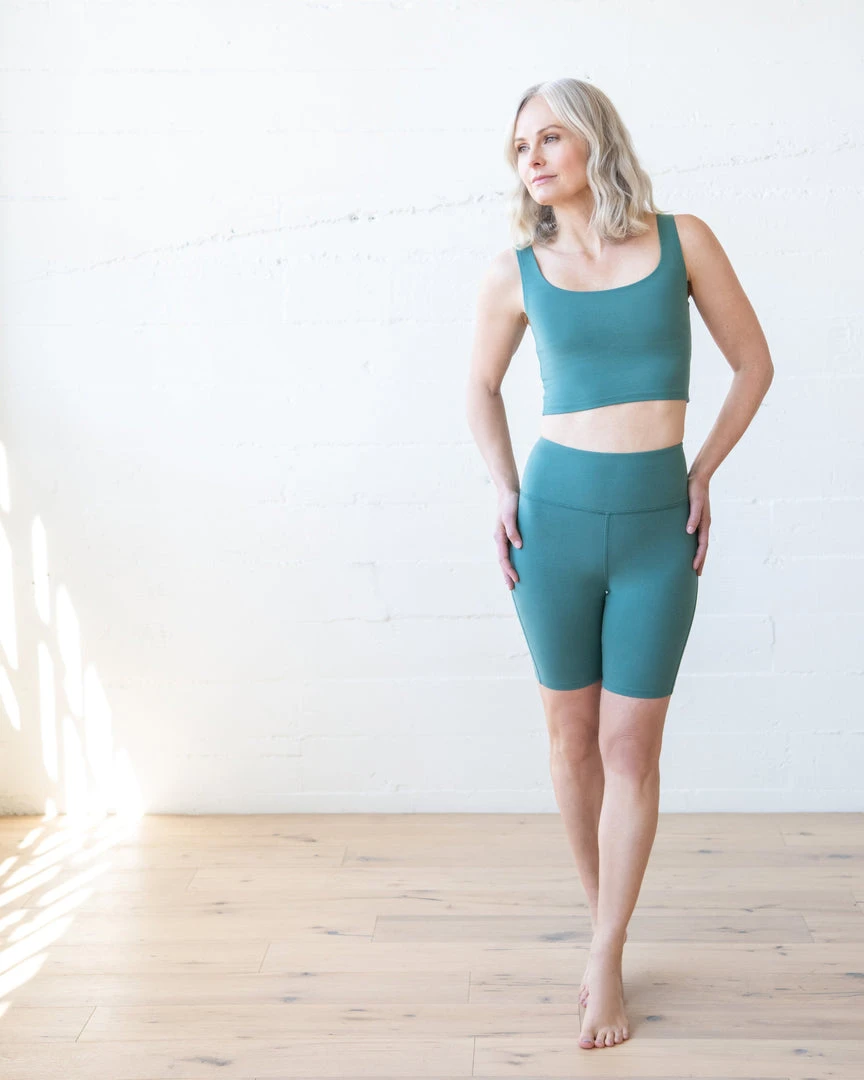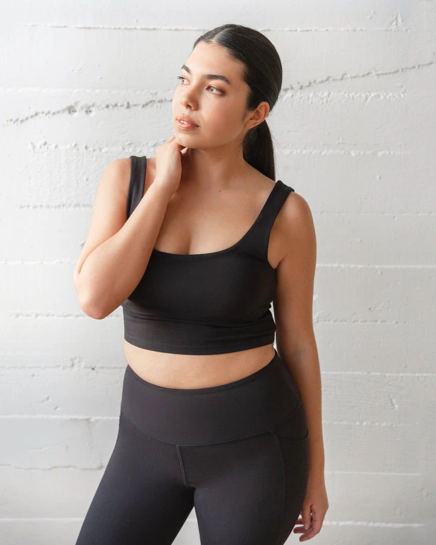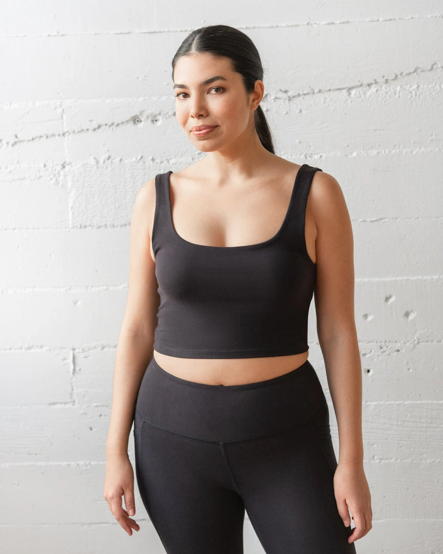 With a modest scoop neck and mid-torso length offering just the right amount of skin, the Align Crop Tank is tasteful and edgy. Designed to match the Bike Short but versatile enough to be worn as a layering basic with any ensemble.