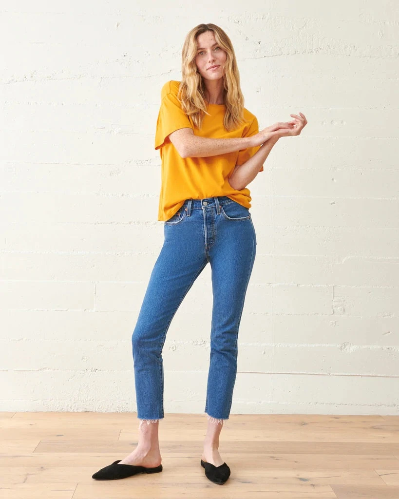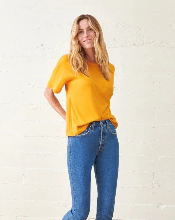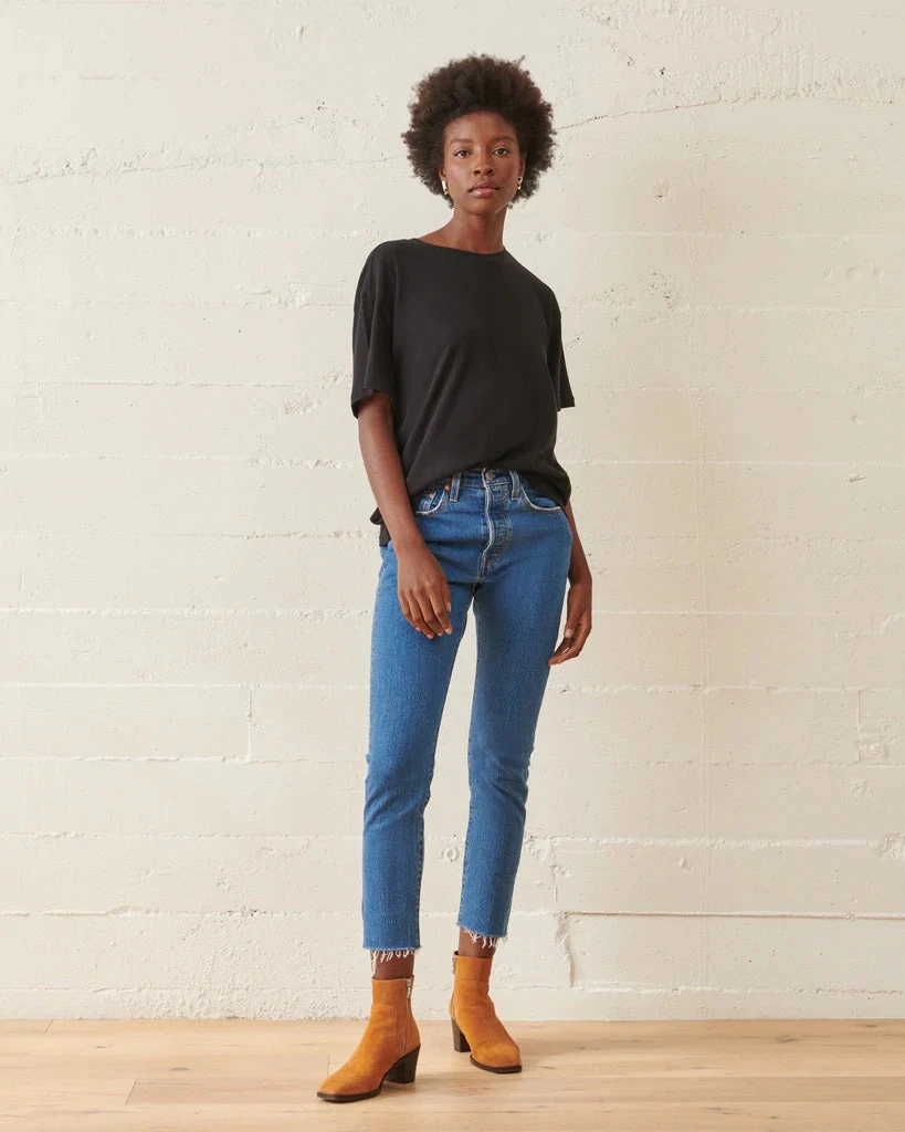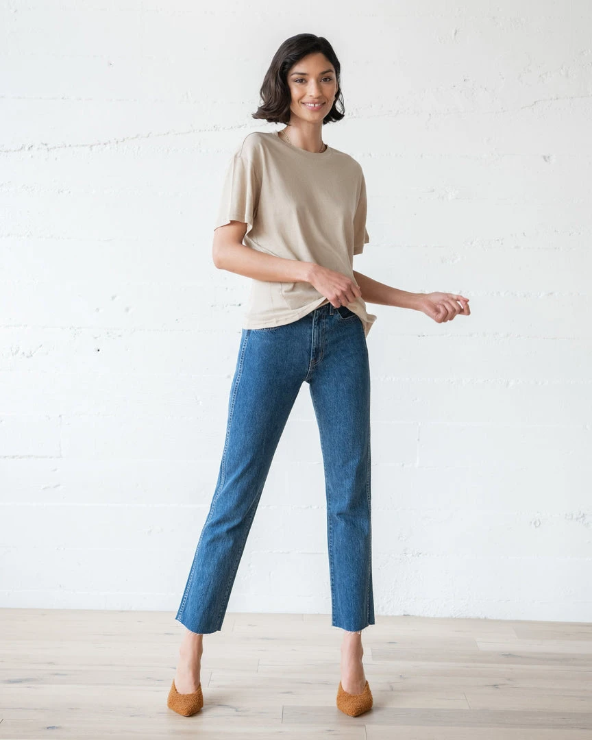 The No. 02 Tee is oversized and has a gentle boxy shape with drop-shoulders and a roomier feel. Made of 100% organic jersey cotton.