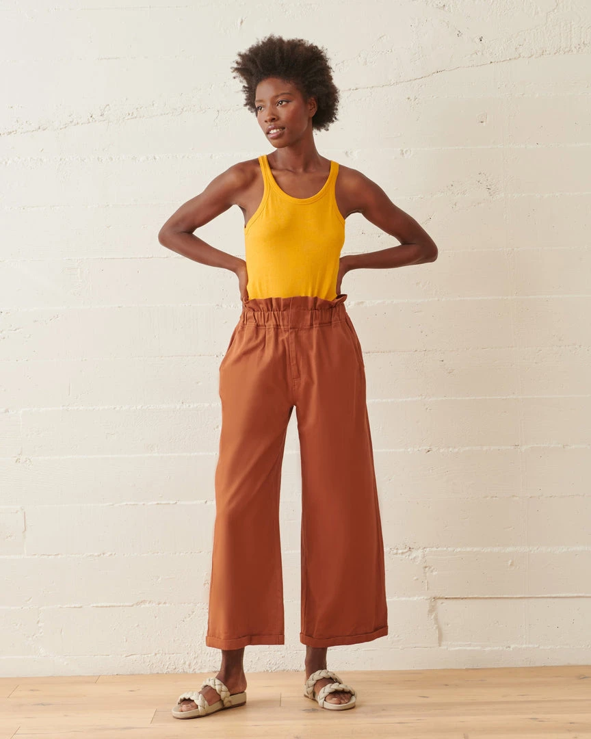 This waist-cinching, wide-leg trouser is forever flattering. Featuring two side pockets, an elastic waist, and a zip hook closure at the fly. Constructed from lightweight stretch eco-twill, these Paper Bag Trousers are effortlessly easy to wear.