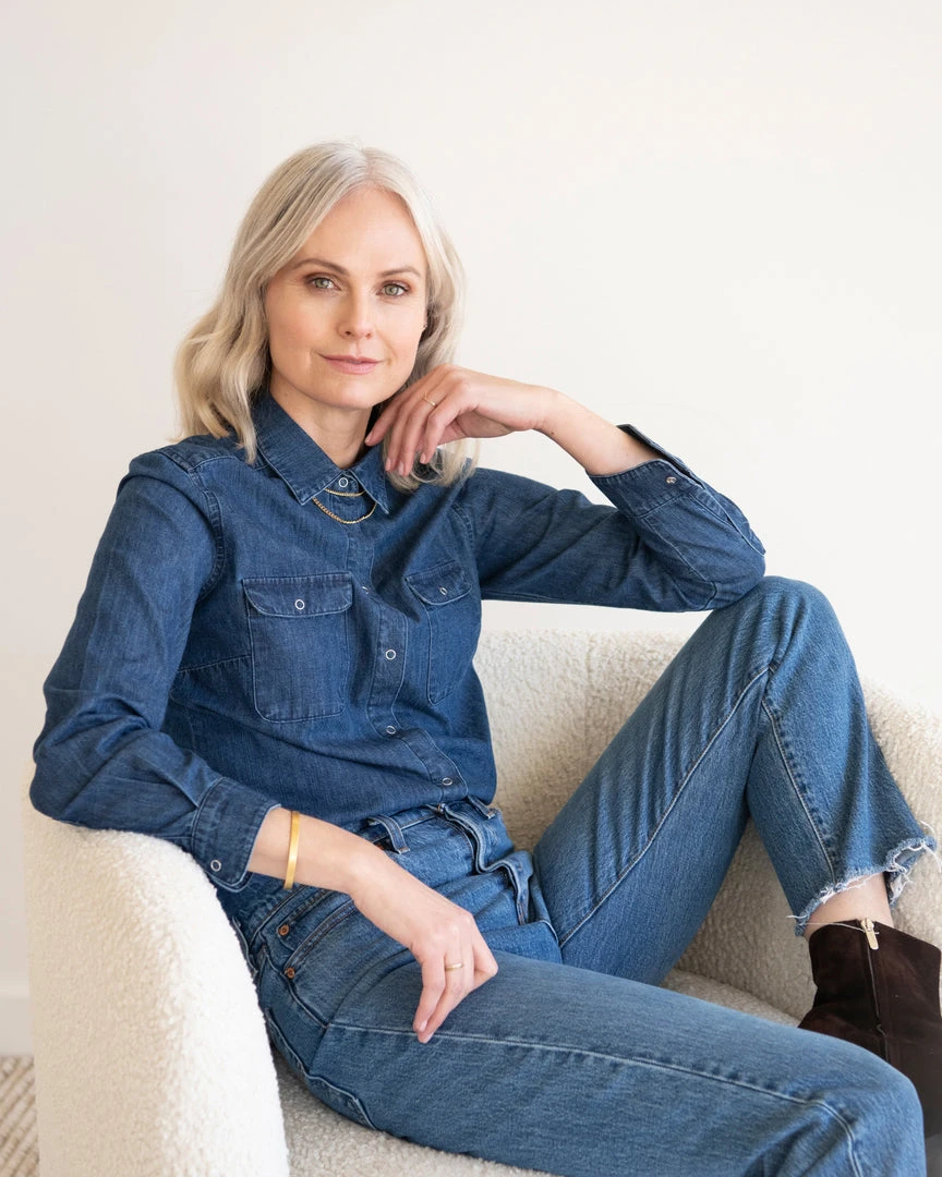 The western-inspired cotton chambray denim True Blue Shirt is built to last. It features double-breasted patch pockets, snap closures, and slim-fitting silhouette.