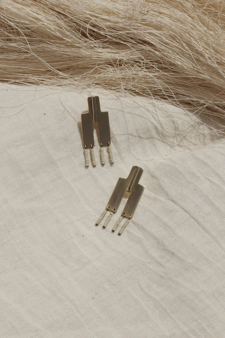 Yewo’s jewelry is made from brass, which is made up of copper + zinc and is nickel free. Yewo’s earring posts are made from hypoallergenic Sterling Silver and the backs are silver-plated brass that contains no nickel or plastic.Â