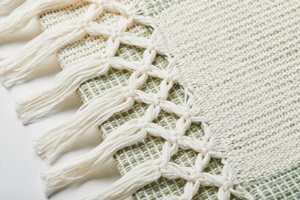 The Sumapaz Throw has a classic block weave pattern with a modern take, showcasing its warm colors and natural textures. Elegant and cozy, this blanket is a sophisticated addition to any bedroom. Whether you choose off-white with beige or sage with mint green, this decor piece will be the perfect thing to cozy up with during the colder months. Due to the handcrafted nature, slight variations in size and color may occur.