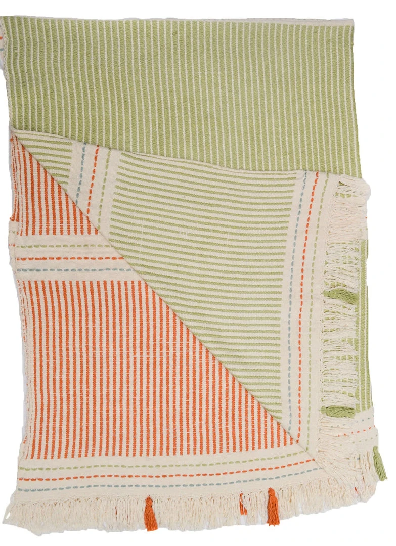 The Lulo fruit has a lovely combination of bright orange on the outside and shades of green on the inside. A famous fruit in Colombia, the lulo was the main inspiration for this colorful orange and green throw. A soft dense weave, the lulo throw was made reversible to showcase conservative neutrals with a hint of fresh natural pastels.