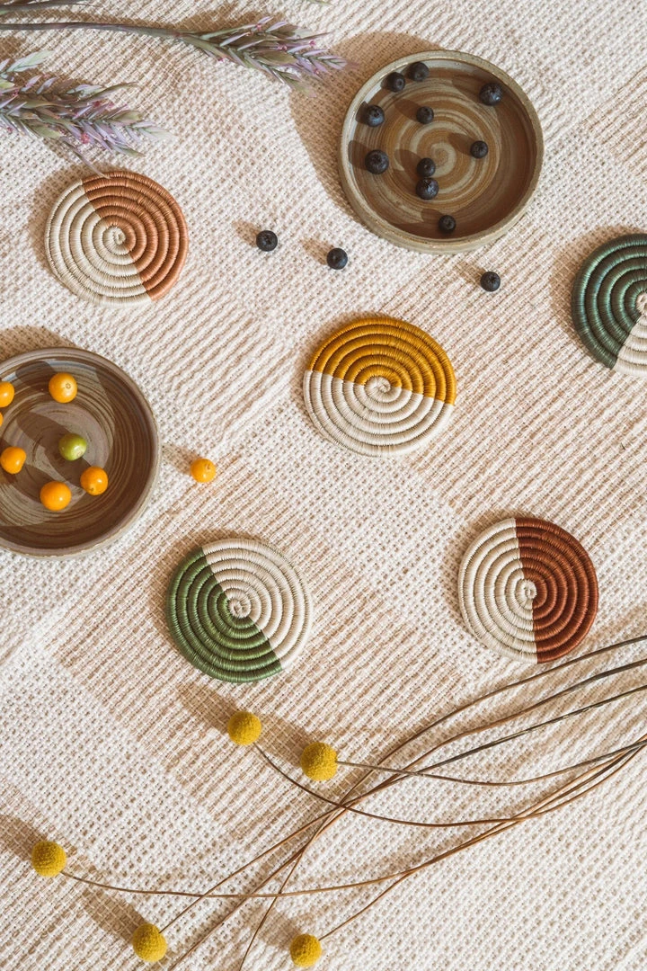 These fun handwoven coasters are sure to help set a cheery mood of any occasion. They come in fivecolor-ways, making endless mix and match options.