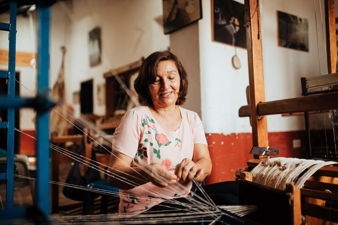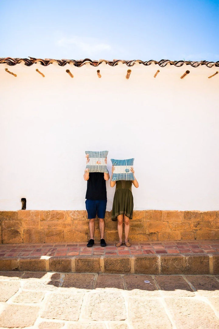 This pillow was inspired by a colorful town in the Quindio region of Colombia. This eclectic pillow features texture and colorful tassels, making it a perfect fun accent to any space.